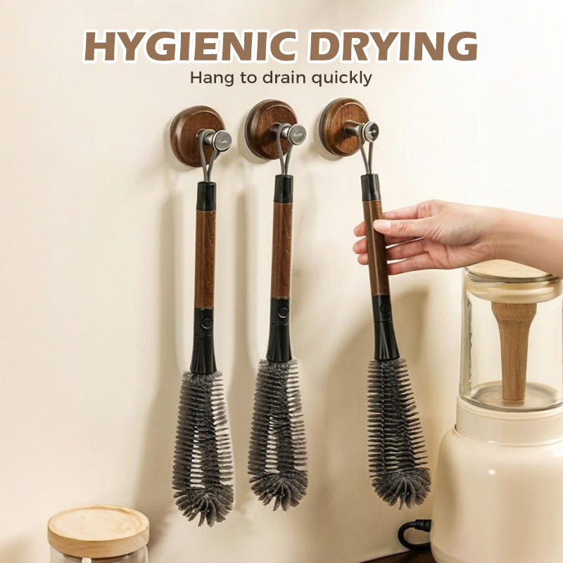 360° RENGÖRINGSKRAFT: Det 90° böjda borsthuvudet passar perfekt i koppens öppning och hörn, så att inga döda vinklar uppstår. Det ger djupgående skrubbkraft samtidigt som det skyddar ytorna från repor, så att dina köksredskap blir fräscha, fläckfria och hygieniska efter varje disk.