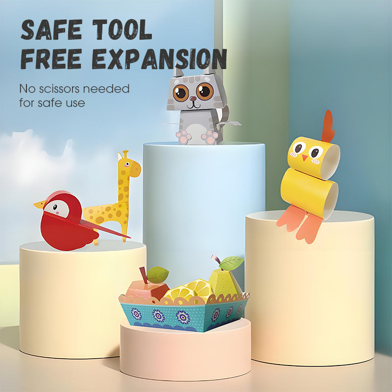 SĂKER OCH VERKTYGSFRI DESIGN: SĂ€kerheten Ă€r högsta prioritet. Boken har en stansningsprocess med pappersmembran som har inbyggda skĂ€rlinjer, vilket eliminerar behovet av saxar. Detta gör den perfekt för smĂ„ barn, som kan njuta av origami utan risk för skĂ€rsĂ„r, vilket ger förĂ€ldrarna sinnesfrid.