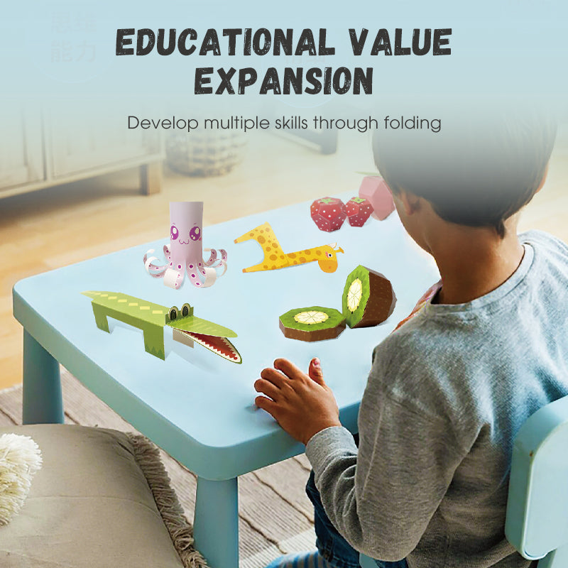 ENGAGERANDE 3D-ORIGAMIUPPLEVELSE: 3D Handmade Origami Book erbjuder en fÀngslande hands-on aktivitet. Med tre uppsÀttningar med totalt 49 unika mönster vÀcker den djur, frukter och klassiska former till liv i 3D. Detta ger inte bara timmar av underhÄllning utan förbÀttrar ocksÄ barnens kreativitet, finmotorik och rumsliga fantasi nÀr de förvandlar platt papper till detaljerade 3D-modeller.