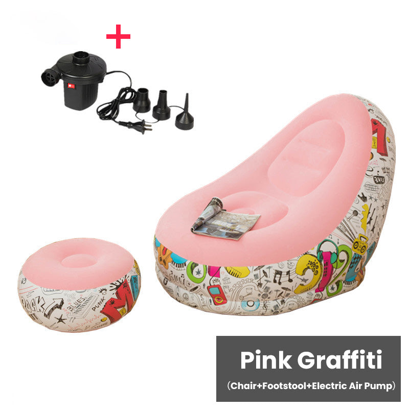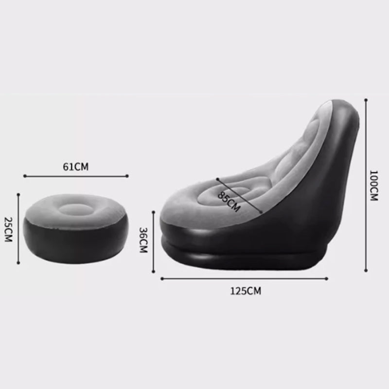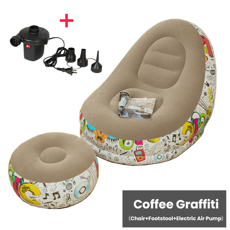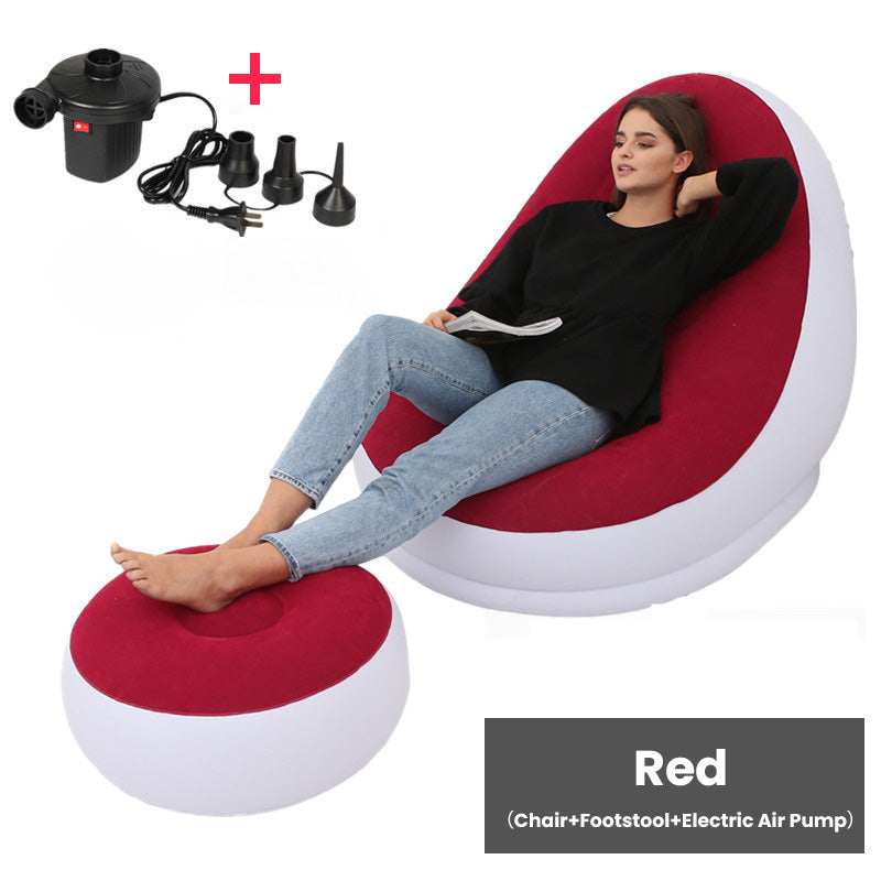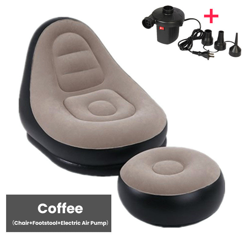KOMPLETT SET - Denna omtänksamma present kommer som en komplett uppsättning, inklusive stolen, fotpall och en elektrisk luftpump. Fotpallen låter dig sparka upp fötterna och njuta av maximal komfort, vilket gör din stilleståndstid till en lyxig upplevelse. Den medföljande elektriska luftpumpen säkerställer problemfri uppblåsning, så att du kan ställa in din avkopplingsplats på nolltid.