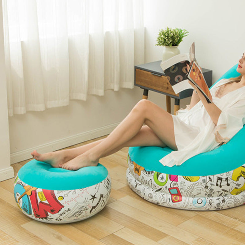 Förtjockad uppblåsbar Bean Bag-stol för vuxna med fotpall✈️ Fri frakt✈️