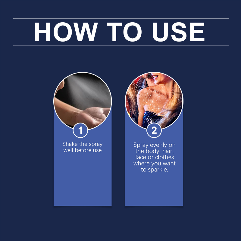 Glitterspray för kropp och hår för fest