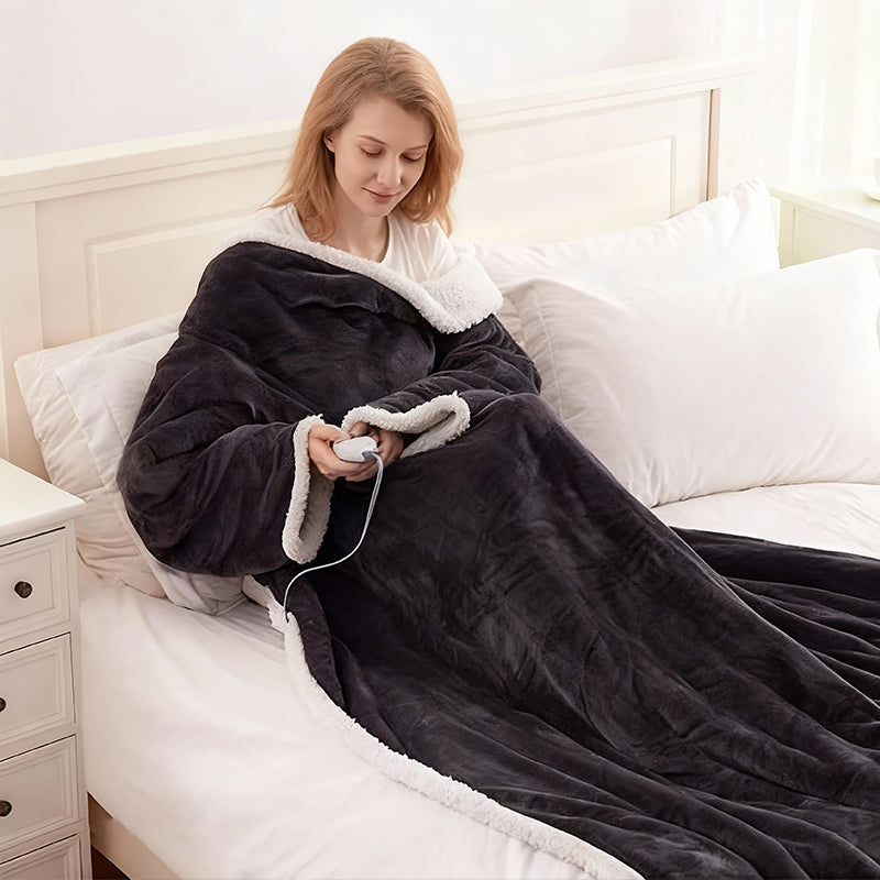 Förpackningen innehĂ„ller: 1 x Flanellfilt med Ărmar och Inbyggd VĂ€rmefunktion