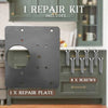 Denna reparationssats för gångjärn innehåller allt som behövs för att laga trasiga, lösa och rostiga gångjärn. Rikta helt enkelt in reparationsplattan med ditt nuvarande gångjärn och skruva fast den för att fästa gångjärnet ordentligt.