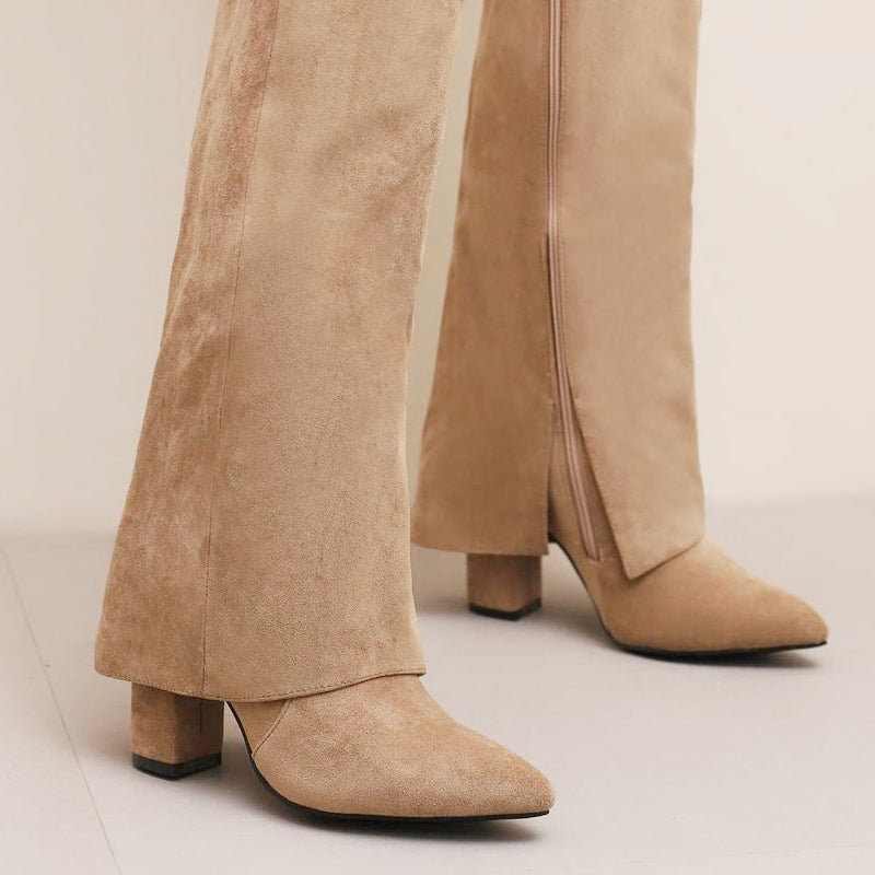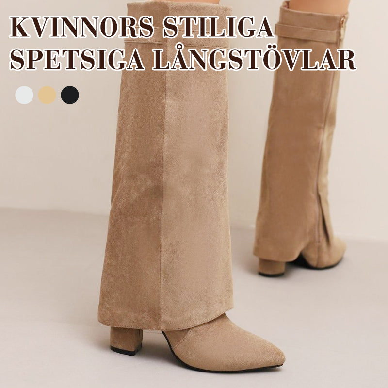 UNIK MODE DESIGN: Dessa lÄngstövlar visar en distinkt silhuett som sticker ut utan anstrÀngning. Den spetsiga tÄn och genomtÀnkta detaljer framhÀver moderna modetrender, vilket gör dem till ett mÄngsidigt statement-plagg i varje garderob.
