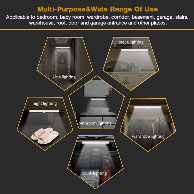 - Den är perfekt för att användas som belysning under skåp, sminkbordsbelysning, säkerhetsbelysning, nödbelysning. Det är ett perfekt val att användas på vinden, källaren, barnrummet, garderoben, skåpet, lådorna, förrådet för nödförnödenheter...