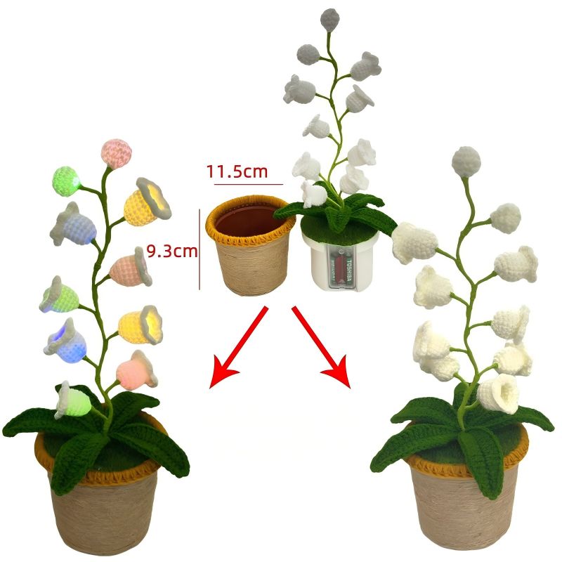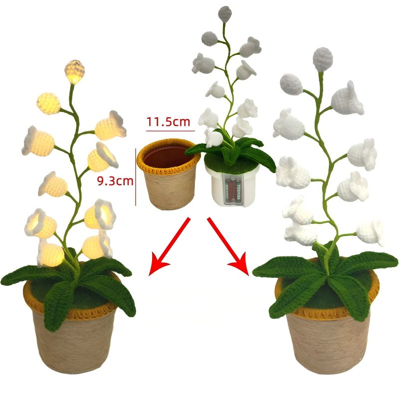HANDGJORT SKÖNHET – Ge ditt utrymme värme och elegans med Lily Glow Crochet Lamp, en vackert handgjord krukväxtlampa med delikat virkade liljor. Dess mjuka, omgivande sken skapar en mysig atmosfär perfekt för avkoppling eller som ett unikt inredningsinslag.