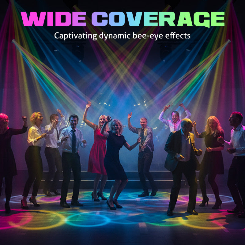 INTEGRERAD BIEĂGLINS - Den centrala biöglinsen producerar en fascinerande tvĂ€tteffekt med flera skarpa strĂ„lar. Den ger djup och komplexitet till din belysningsinstallation och levererar professionella bilder för scener, klubbar och fester.
