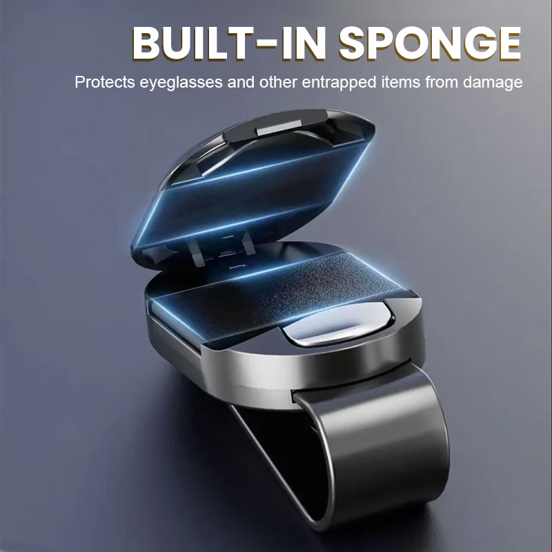 UNIVERSELL KLÄMDESIGN: Utrustad med en förstärkt fjädermekanism i rostfritt stål som säkert fäster vid bilens solskydd utan att glida eller skada ytor. Den breda klämman passar de flesta solskyddsdesigner och har en låg profil.