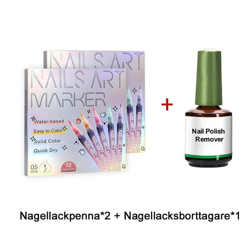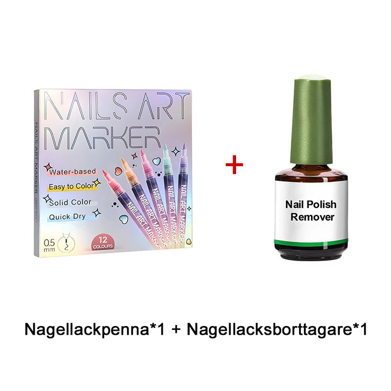 Paketet innehÄller: 1 uppsÀttning nagelkonstpennor med 12 fÀrger
