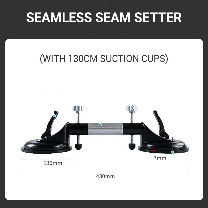 SUPERSTYRKT HÅLL: Verktyget är utrustat med stora, höghållfasta sugkoppar som håller fast verktyget på släta, icke-porösa ytor och ger ett säkert grepp för exakt positionering av sömmen.