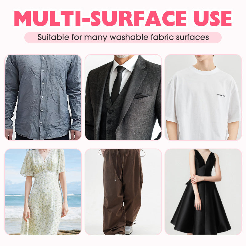 FÖR FLERA YTOR – Passar tvättbara tygytor som kostymer, uniformer och klänningar. Den multifunktionella formulan hjälper även till att minska statisk elektricitet på syntetfibrer.