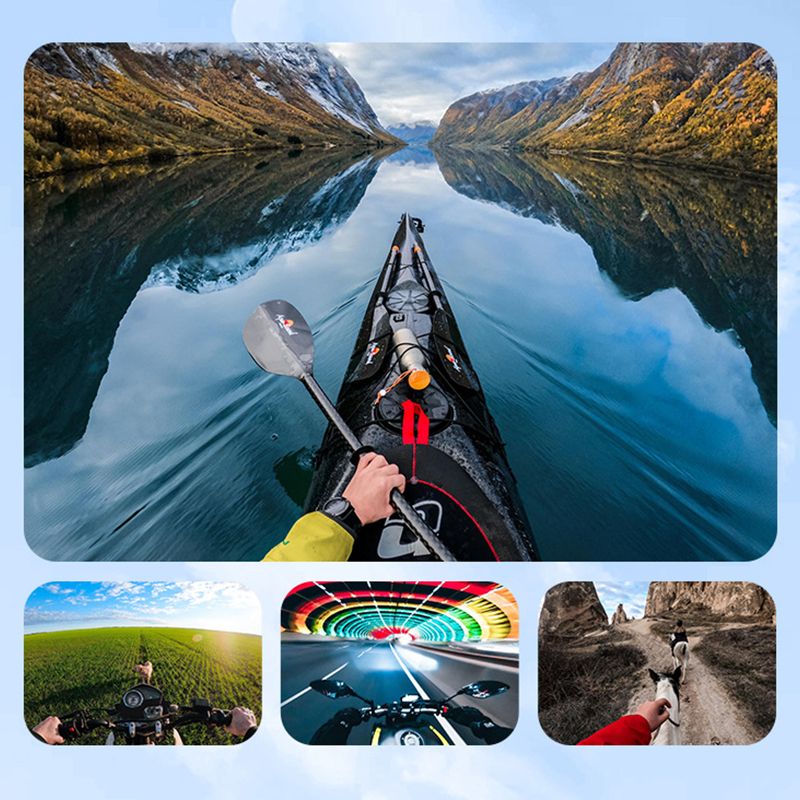 Designad för POV- och VLOG-fotografering, det bästa tillbehöret för videoinspelning. Du kan använda den vid utomhusklättring, cykling, ridning (istället för att använda en motorcykelhjälm hakmontering) vandring, skidåkning, dykning (istället för att använda en munmontering eller handledsrem), shopping, lockfiske etc. och för inomhusmatlagning, sammankomster, fest, leka med husdjur, stanna med babyinspelning etc.