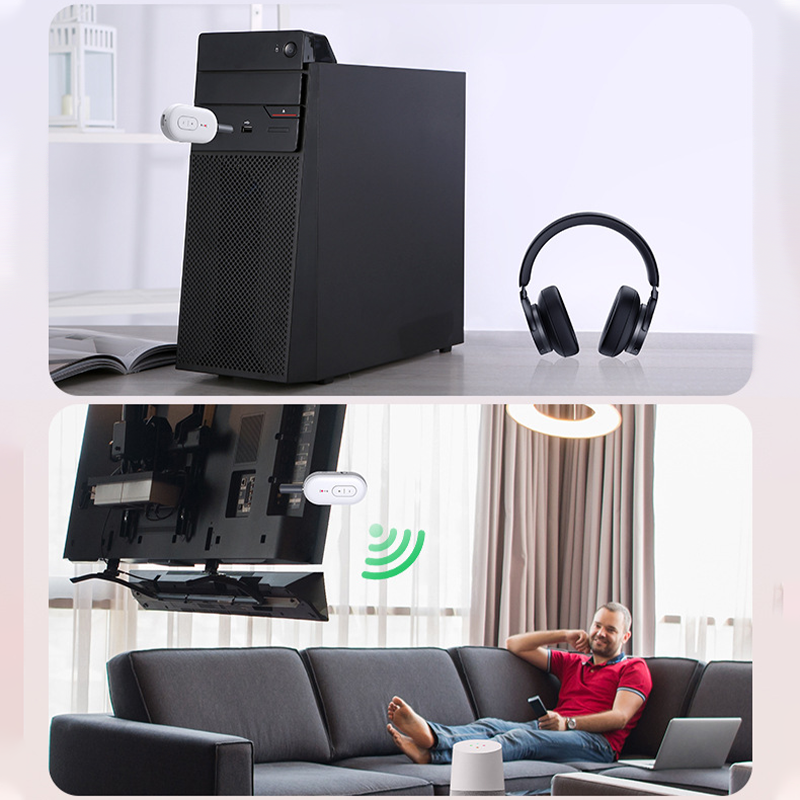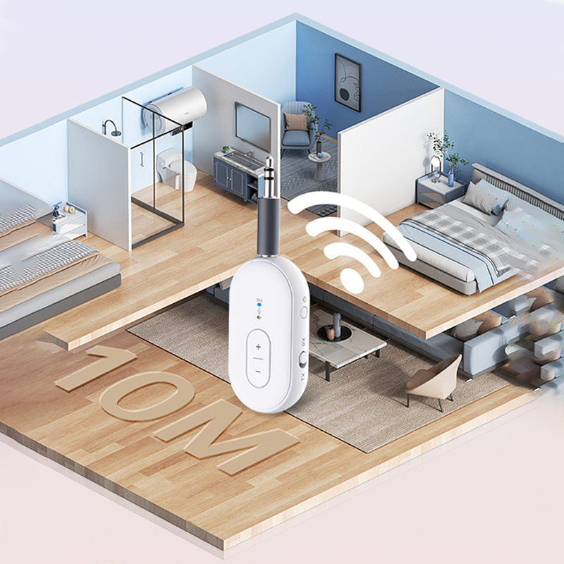 UNIVERSELLA ANSLUTNINGSALTERNATIV – Utrustad med ett 3,5 mm AUX-utgångsuttag, kompatibel med en mängd olika ljudenheter som TV-apparater, surfplattor, smartphones och bilstereo. Designen med dubbla antenner säkerställer stabila anslutningar genom väggar och hinder, samtidigt som den hjälper till att undvika störningar.