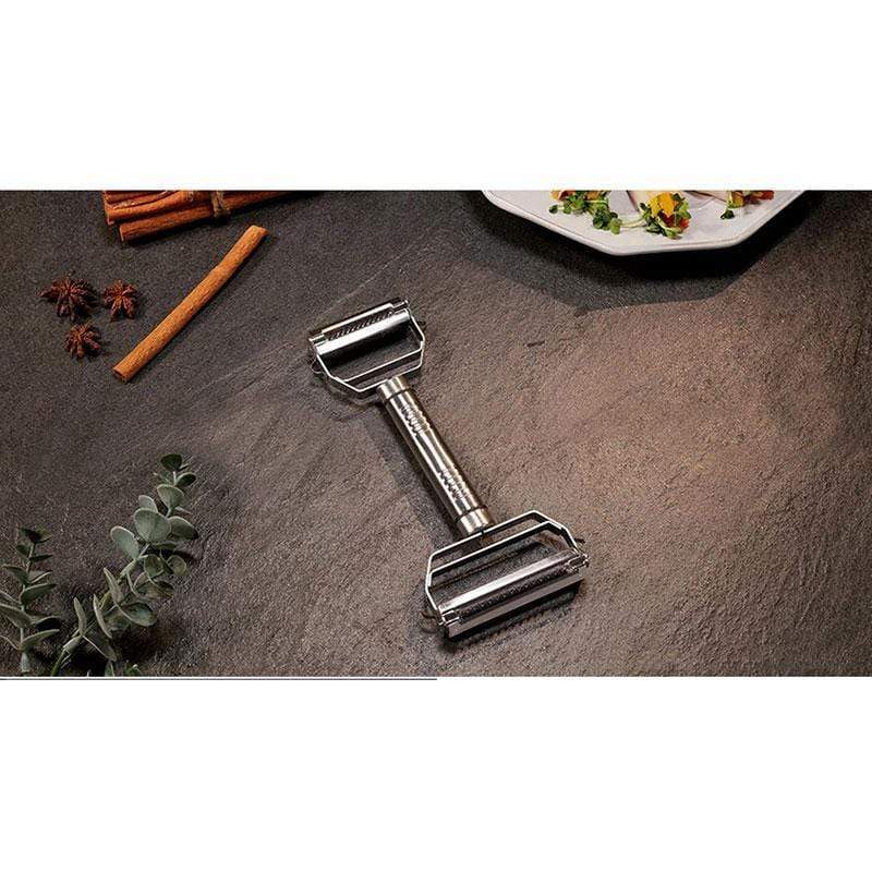 - Denna skalare är det perfekta verktyget för att ta bort skalet på en mängd olika frukter och grönsaker. Bladen i rostfritt stål ger bättre funktion. Detta praktiska köksredskap river av frukt och grönsaker och formar en ostkurva med precision och snabbhet.