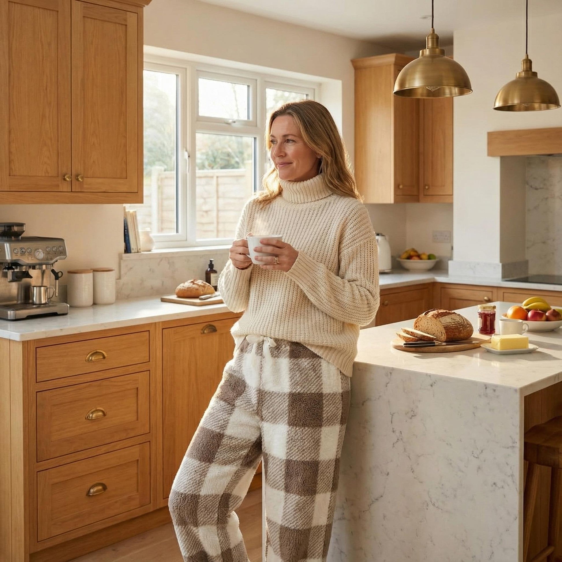 Vi designade dessa byxor för brittiskt vinterliv: den lyxiga fleecen Ă€r vald för lĂ„ngvarig mjukhet och vĂ€rmehĂ„llning (inga skrapande tunna tyger). Den vintagerutiga rutmönstrade mönstret Ă€r en nickning till klassisk brittisk stil â tidlös nog att bĂ€ras Ă„r efter Ă„r, inte bara en sĂ€song. FörstĂ€rkta sömmar gör att de tĂ„l oĂ€ndliga mysiga kvĂ€llar och festliga Ă€ventyr. Detta Ă€r komfort du kan lita pĂ„, insvept i en stil som passar perfekt in i din brittiska garderob.