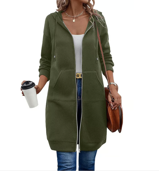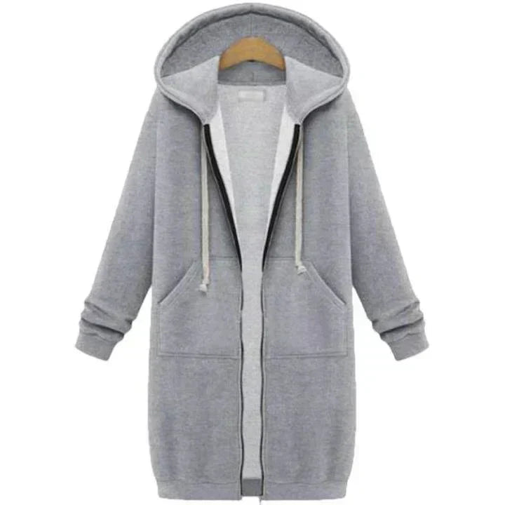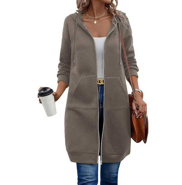 Casual långa huvtröjor i polyester för kvinnor med fickor Tunika Sweatshirt Ytterplagg Jacka