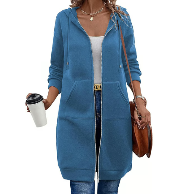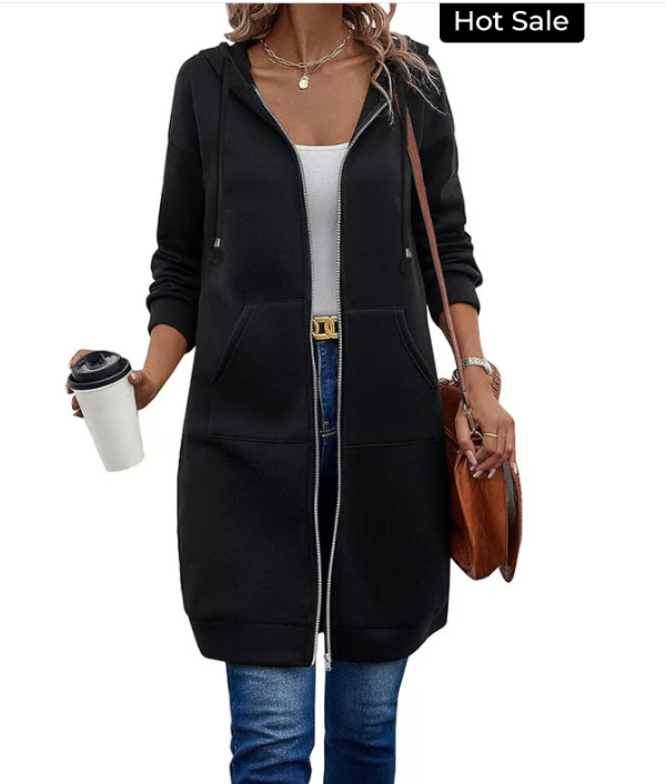 Denna varma jacka med huva och dragkedja för kvinnor är både slitstark och bekväm. Den deformeras inte lätt efter tvätt. Den är perfekt för alla avslappnade tillfällen som jogging, avkoppling och semester, och passar perfekt till leggings, klackar, stövlar och mycket mer.