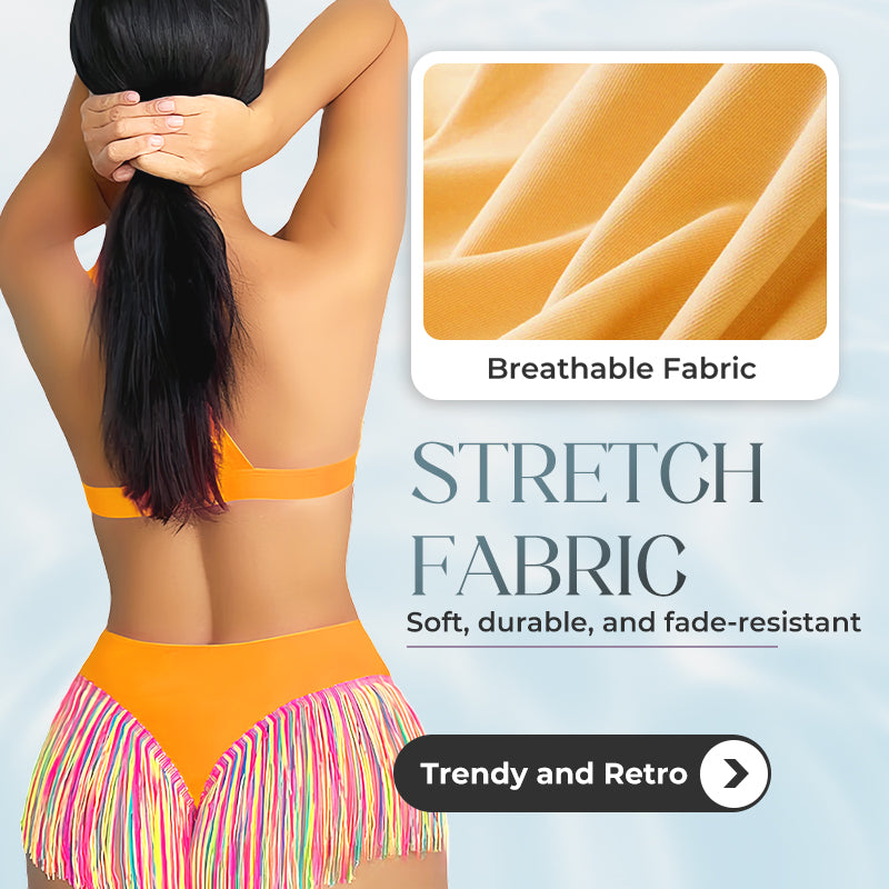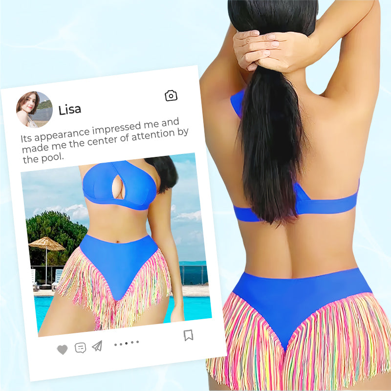 LEKFULLA FRANSDETALJER – Fållen är avslutad med mjuka fransar som svajar med rörelsen, vilket ger dina badkläder en touch av lek. Det ger en lekfull charm samtidigt som det förstärker den övergripande estetiken i din look.