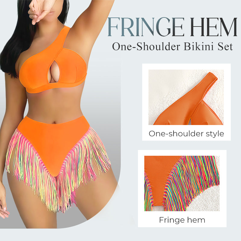 Paketet inkluderar: 1 * Dambikiniset med en axel och fransar i nederkant