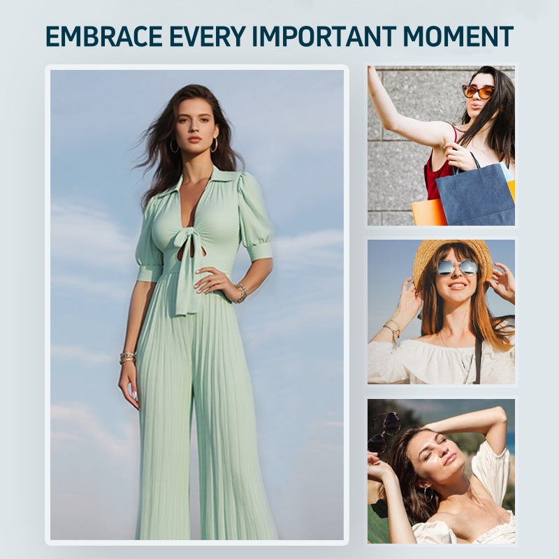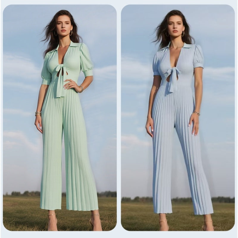 V-ringad plisserad jumpsuit i enfärgad modell för kvinnor 💛💛