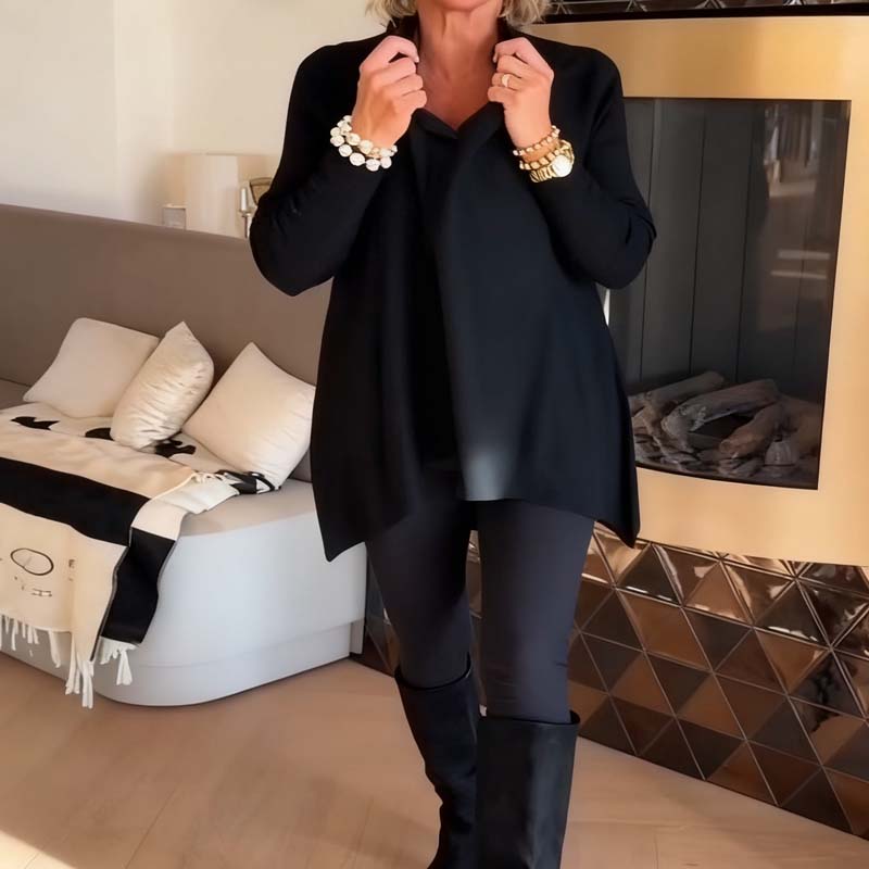 AVSLAPPEN MEN RAFFINERAD – Denna topp blandar avslappnad stil med funktionell komfort. Dess rena linjer, slag och subtila asymmetri gör den lämplig för både professionella och avslappnade tillfällen. Perfekt att bära under jackor eller som ensam, den anpassar sig enkelt till olika stilar samtidigt som den bibehåller ett sammanhängande, välklätt utseende.