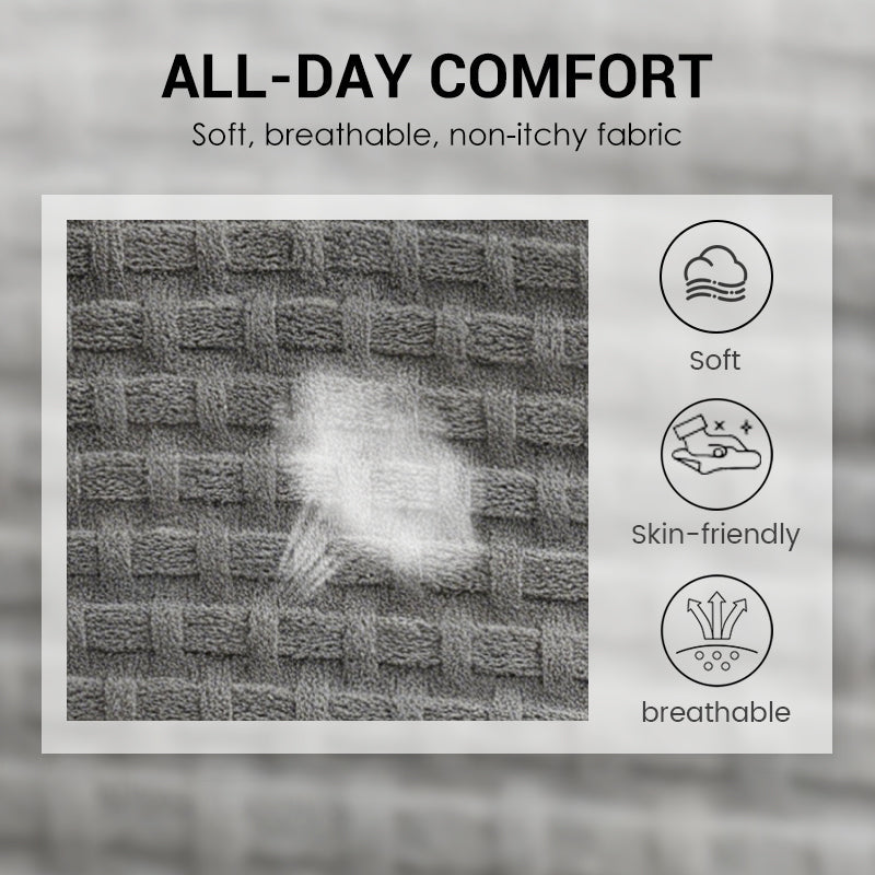 MJUKT TYG - Tillverkat av ett mjukt, högkvalitativt stickat material som känns skonsamt mot huden. Den ger exceptionell värme och andningsförmåga, vilket säkerställer att du håller dig bekväm oavsett om du är inomhus eller utomhus.