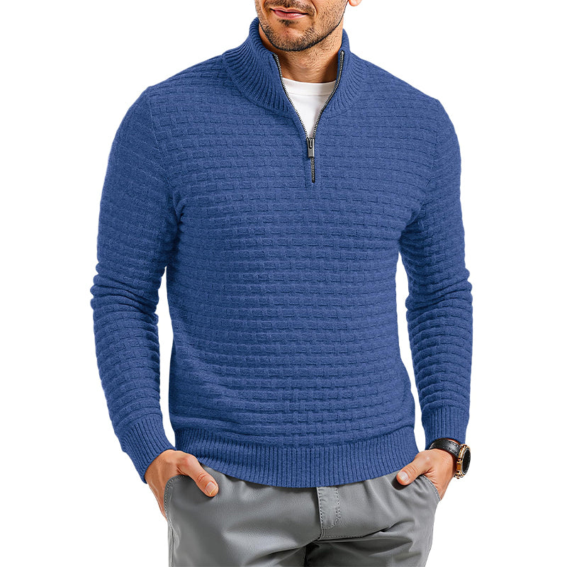 Paketet innehåller: 1* Stickad långärmad herrtröja med kvarts dragkedja